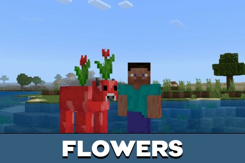 There are more features: players can get food with interesting effects with the help of new mobs. While shearing cows, the MCPE player receives flowers that grow on the animal.