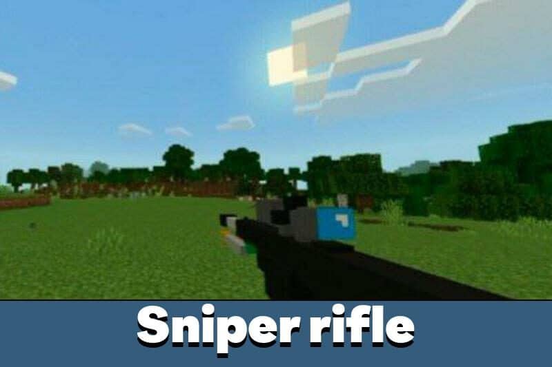 These Gun Textures change the appearance of crossbows with modern firearms. The Minecraft PE player gets an exact copy of assault rifles. Also with this pack, robbers will appear in the game with sniper rifles.